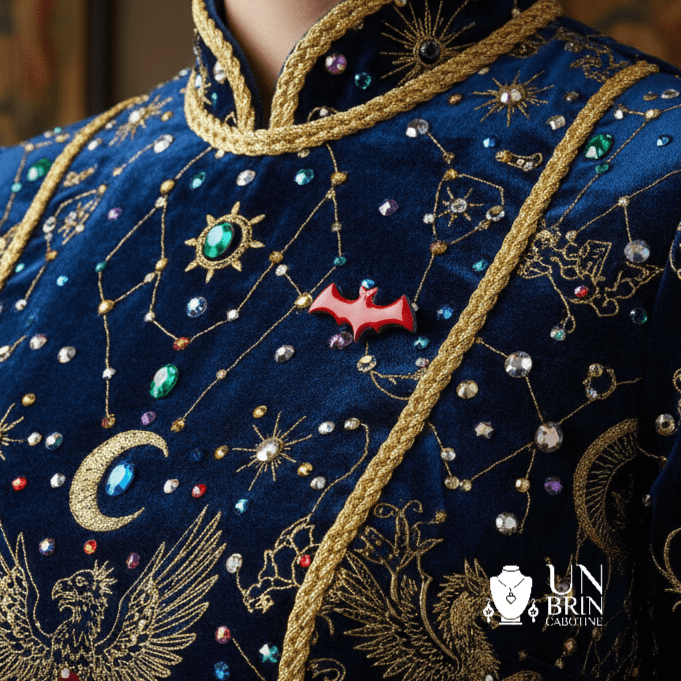 1 Broche assortie : Une chauve-souris au rouge intense et brillant, résiné, parfaite pour rehausser une veste sombre ou un accessoire de mode.