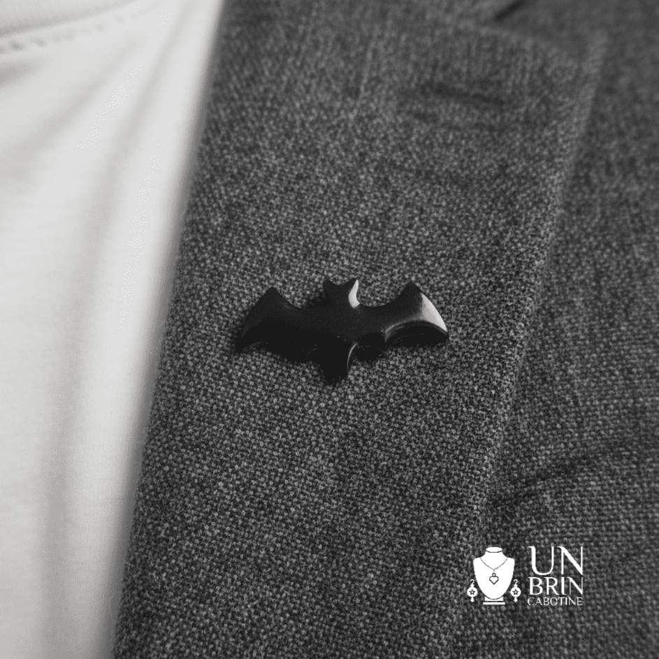 1 Broche assortie : Une pièce de caractère à la finition noire brillante, parfaite pour personnaliser un revers de veste, un manteau ou un accessoire.