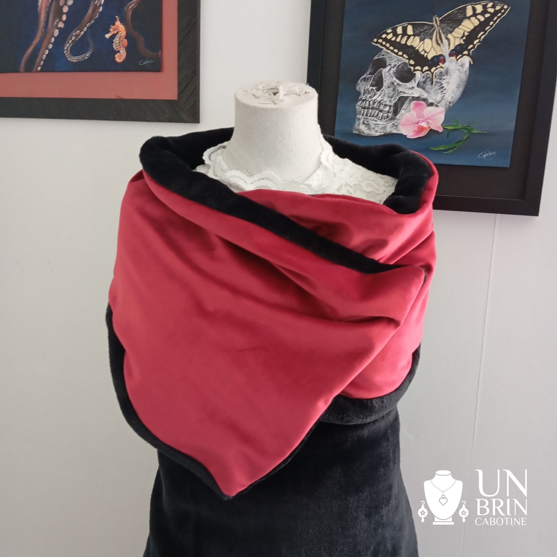 Écharpe "Un Brin Cabotine" – Velours Rouge & Douceur Noire