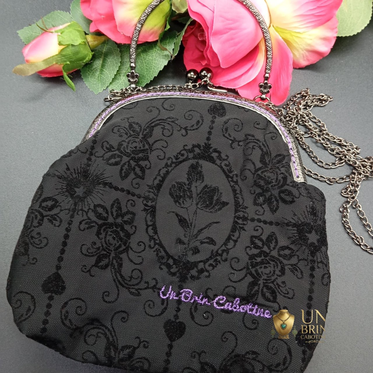 Dimensions : Fermoir de 16 cm (largeur), hauteur de la pochette de 20 cm.