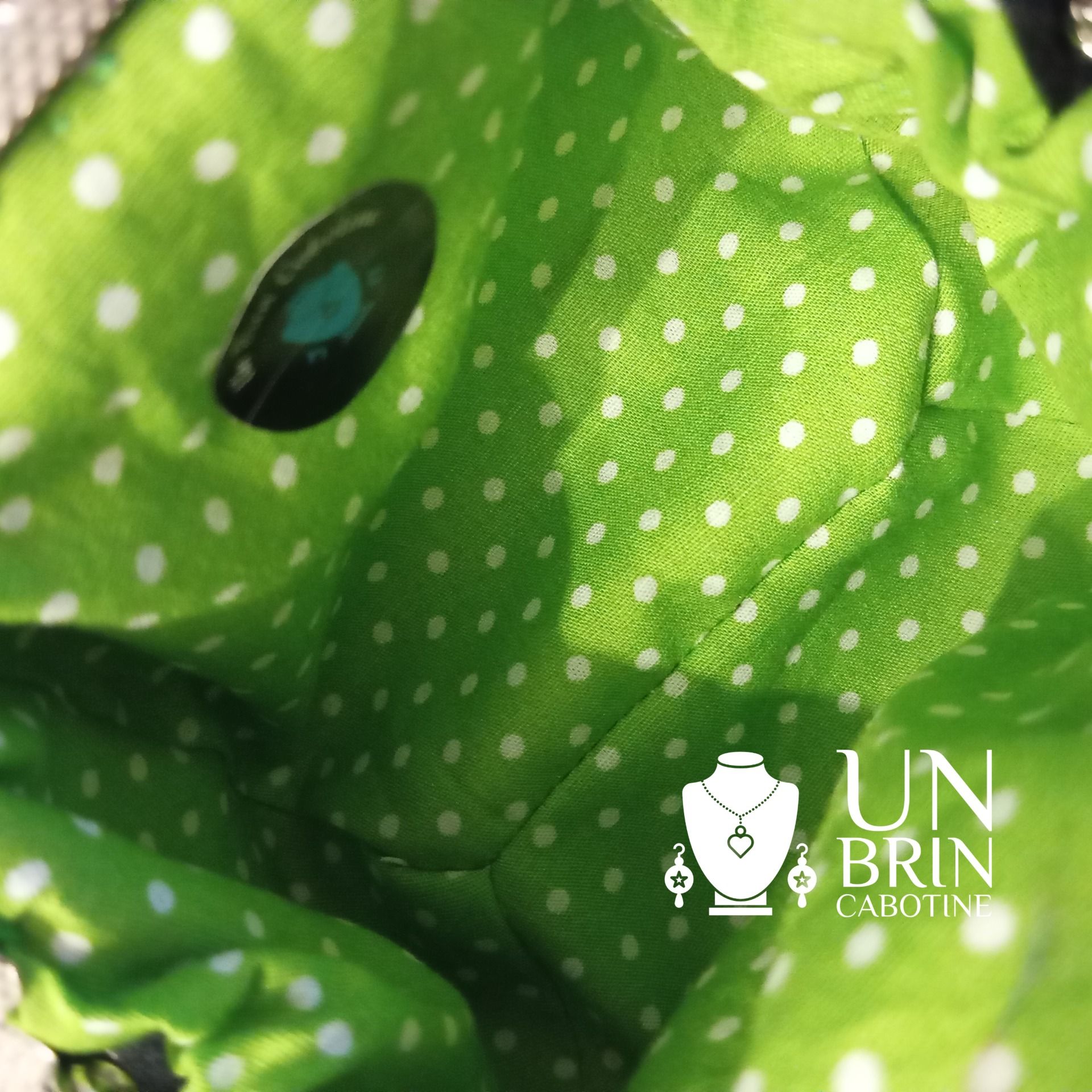 - Intérieur : Doublé petits poids, vert et blanc.