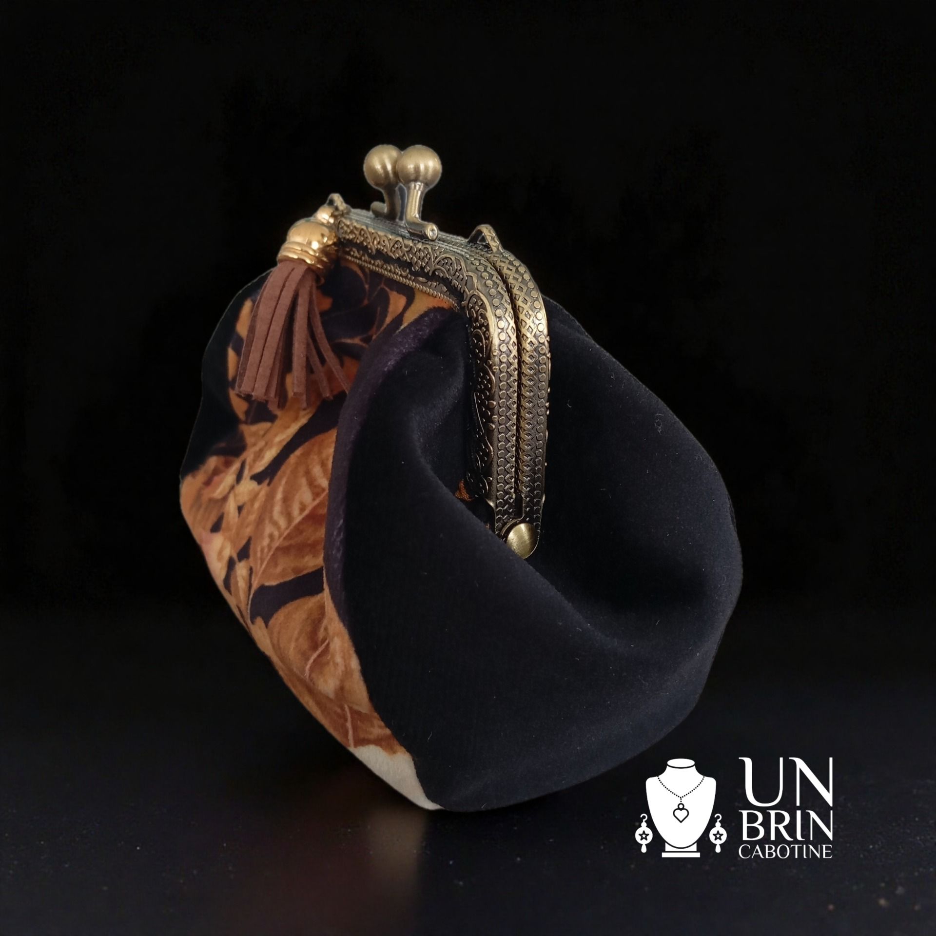 Ce porte monnaie est une véritable pièce d'artisanat, mêlant le charme de l'ancien à un imprimé nature luxuriant.