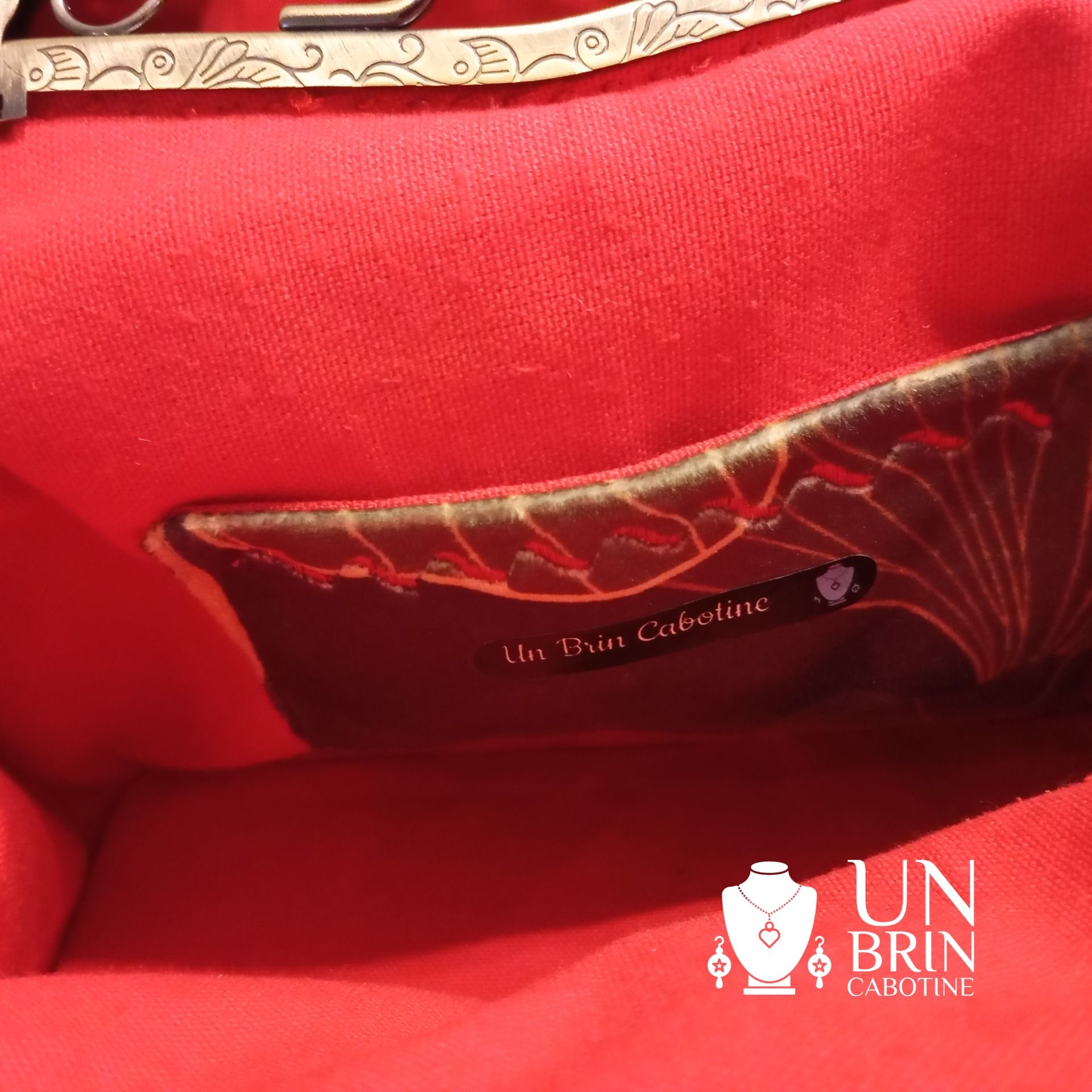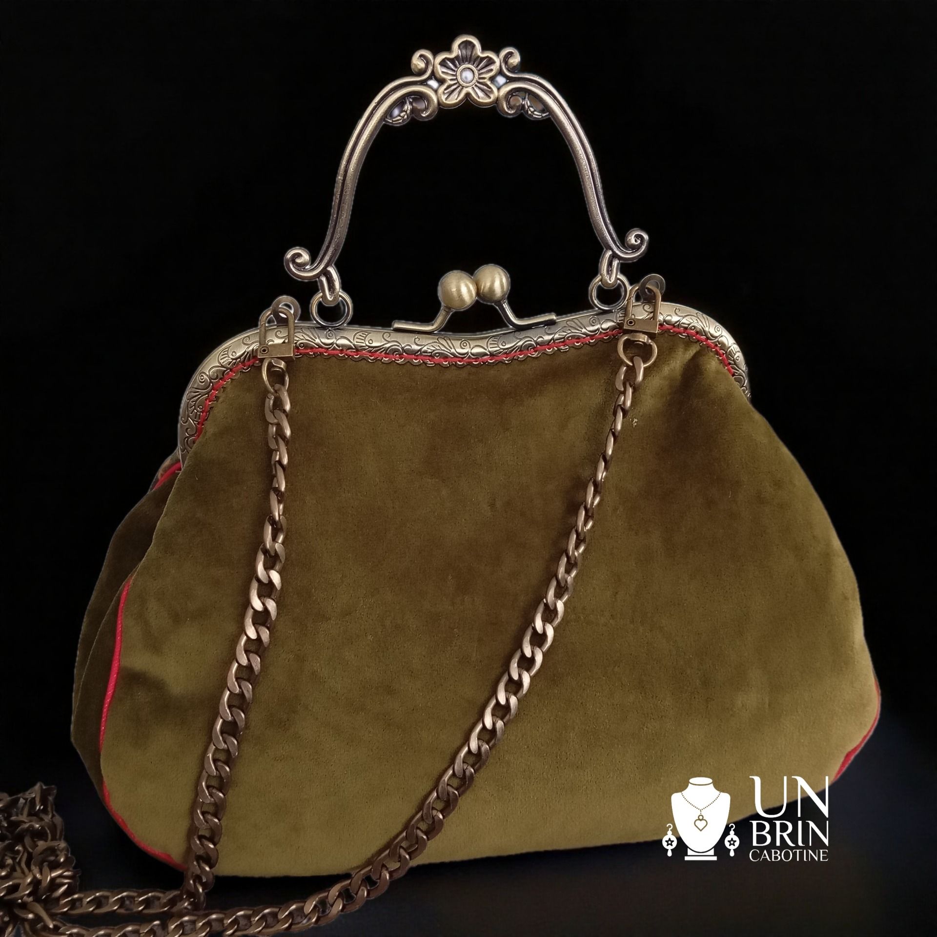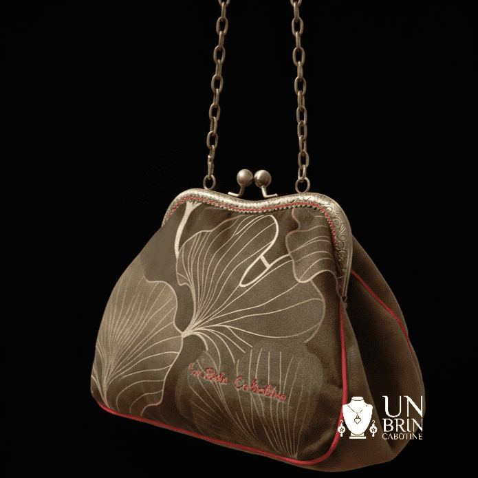 Sac Bijou "Ginkgo Éclat" – Kaki Velouté & Passepoil Rouge Passion