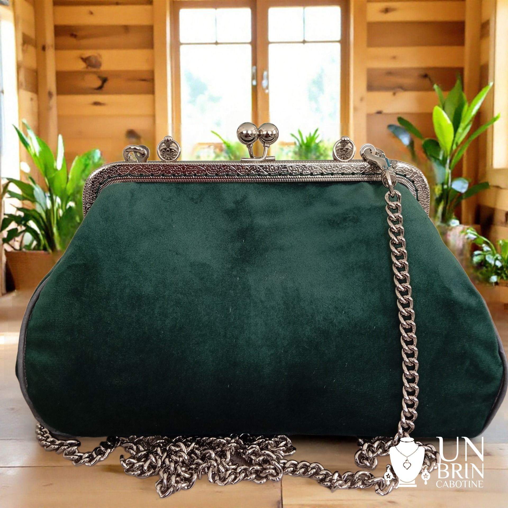 - Sangle en chaîne de couleur argent, assortie au fermoir.