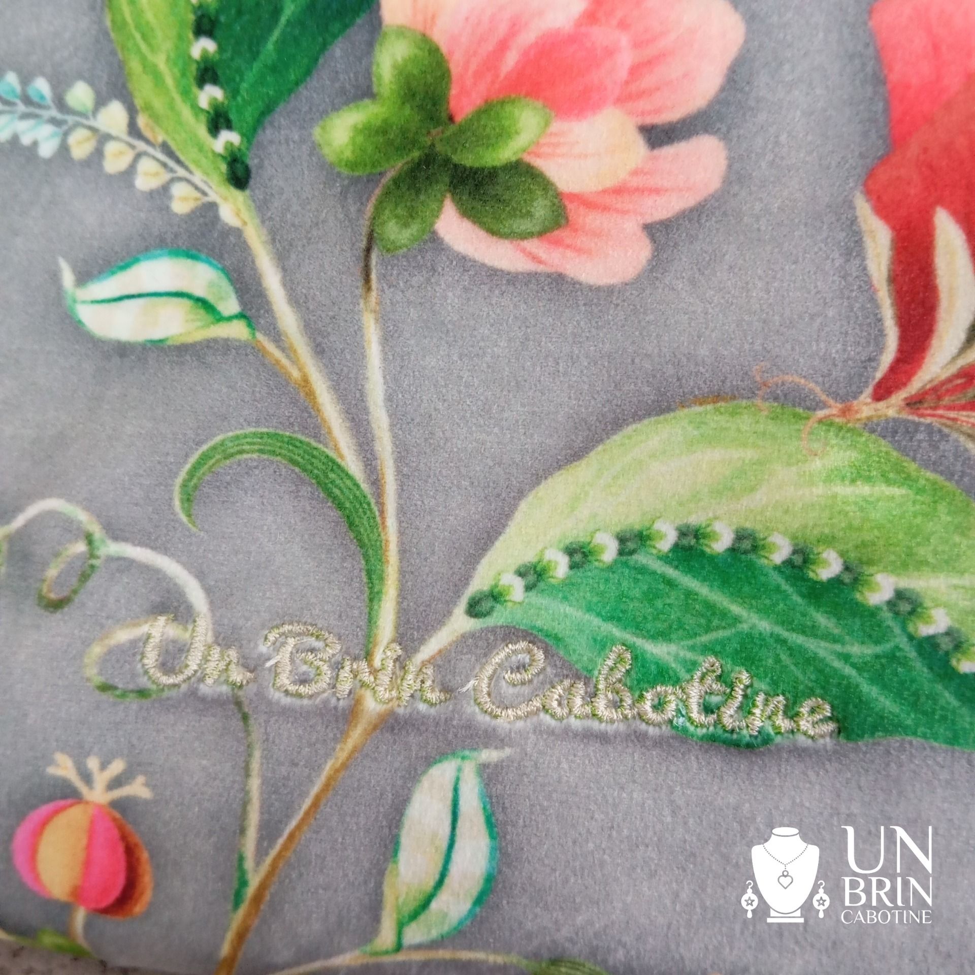 - Jolie broderie "Un brin Cabotine" en bas à droite