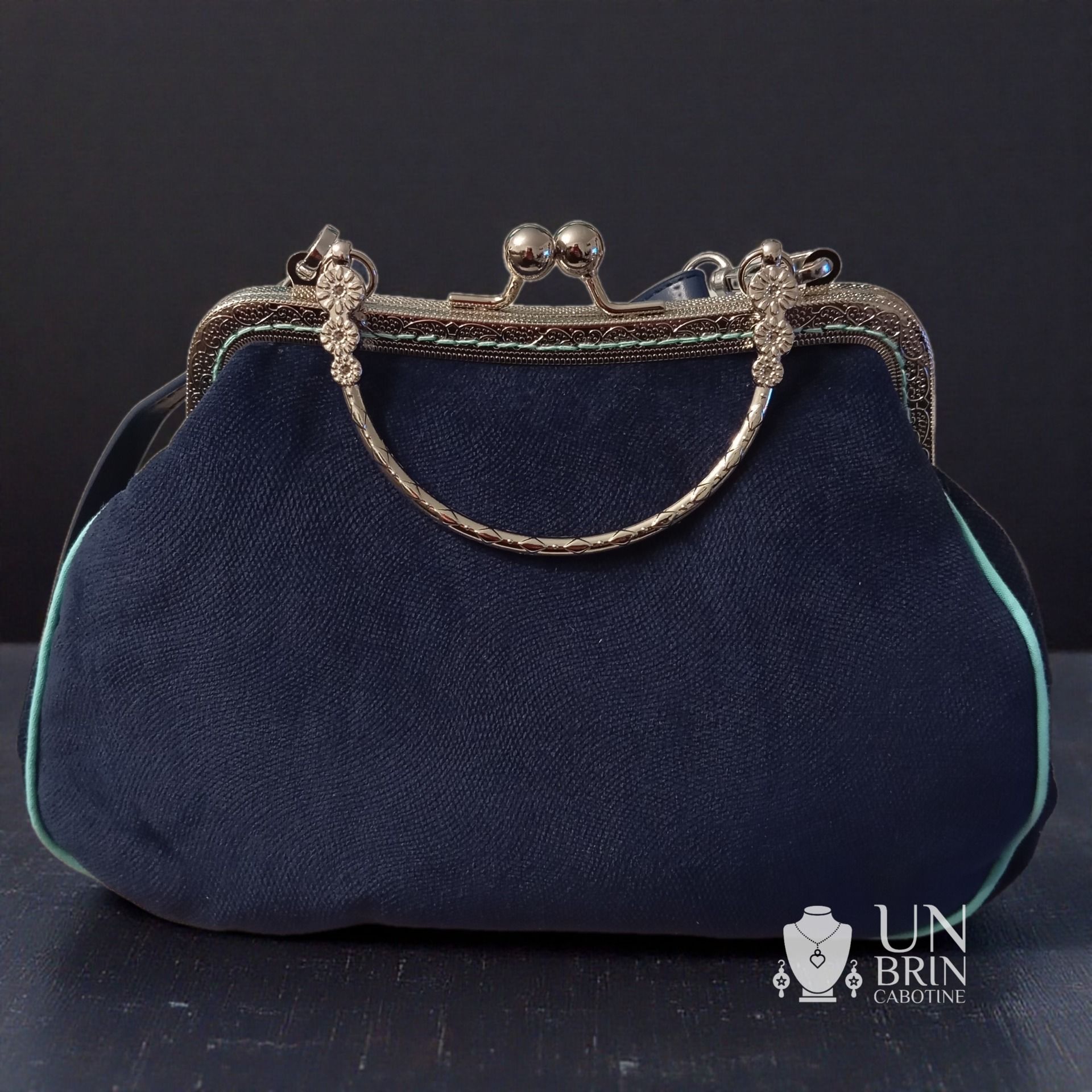 - Dos et dessous en velours bleu marine