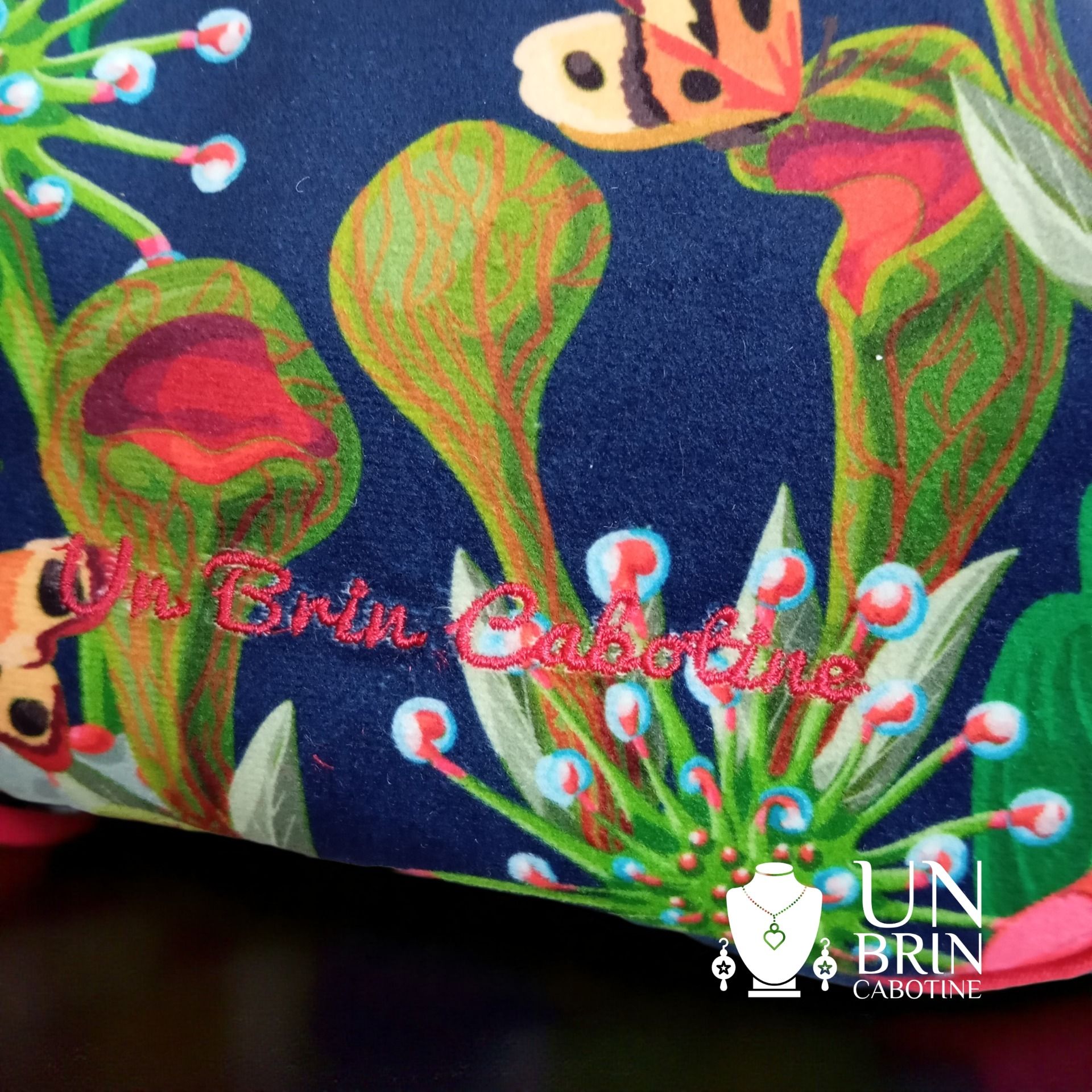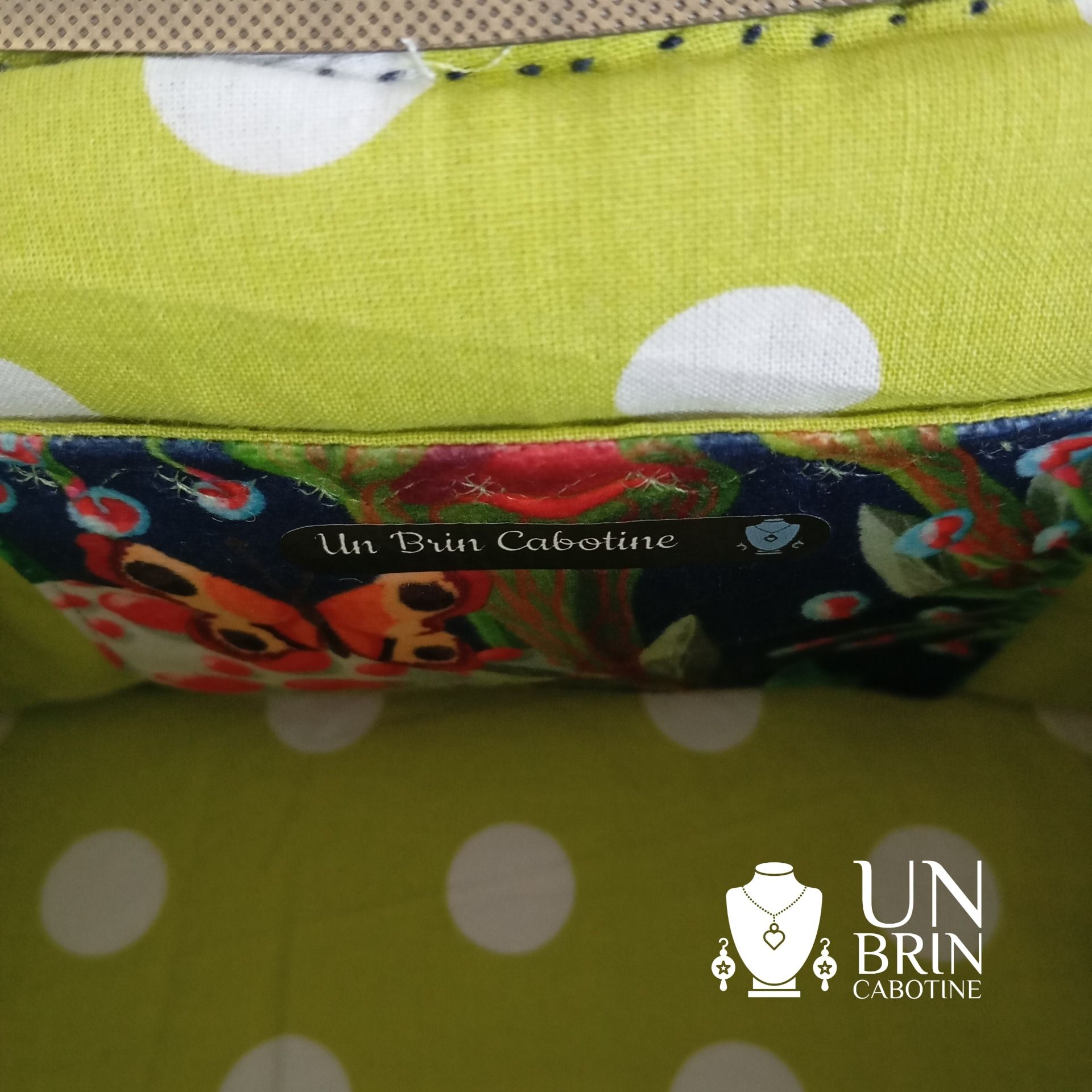 - Jolie broderie "Un brin Cabotine" en bas à droite