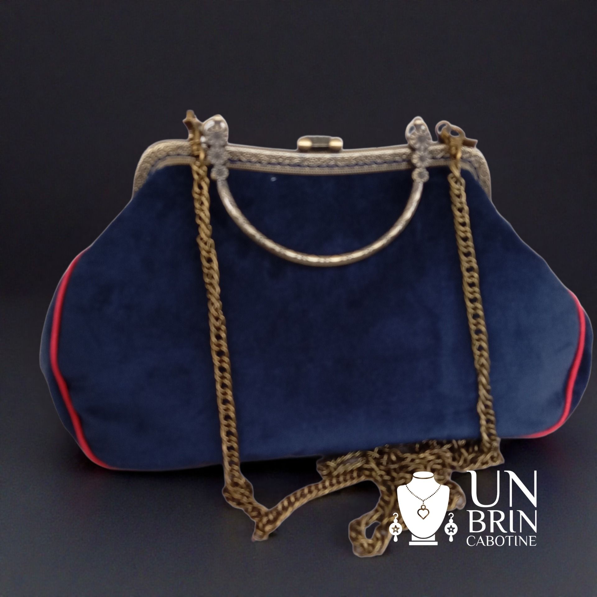 - Sangle en chaîne de couleur bronze, assortie au fermoir.