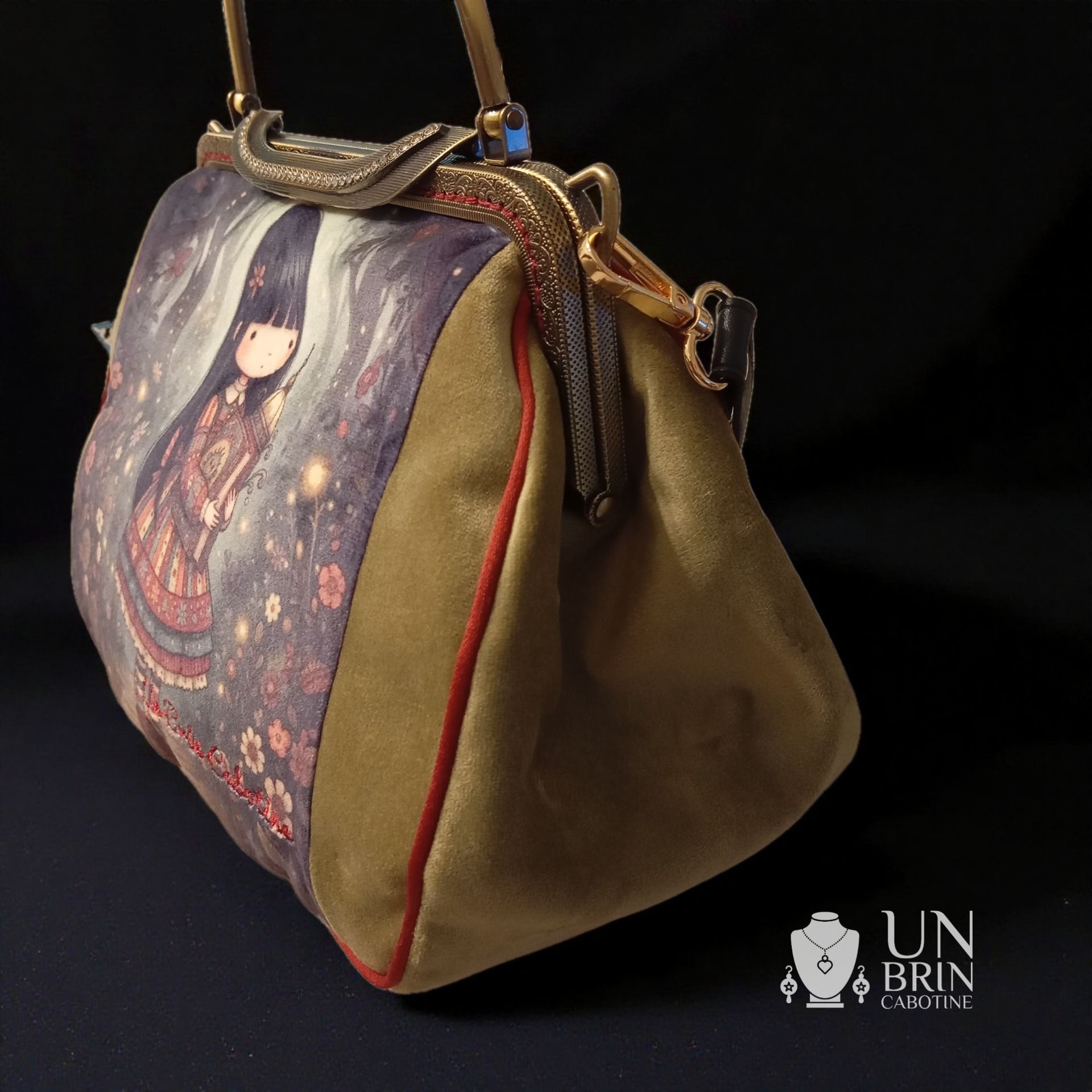 Laissez-vous envoûter par cette nouvelle création où le charme du rétro rencontre la poésie d'un conte de fées. Avec son illustration délicate et son fermoir bijou scintillant, ce sac est une invitation au voyage intérieur et à la rêverie.