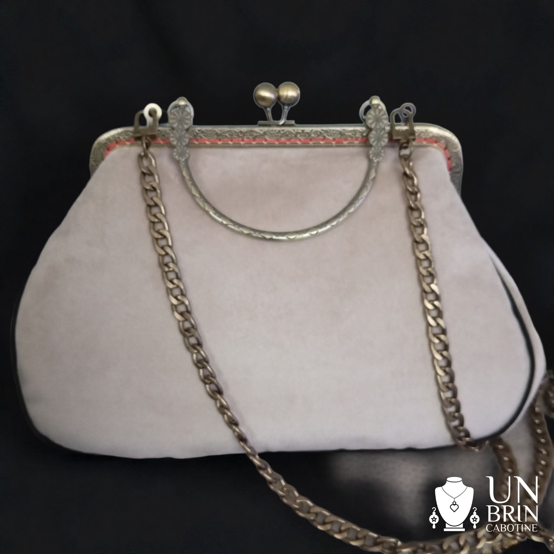 - Sangle en chaîne de couleur bronze, assortie au fermoir.